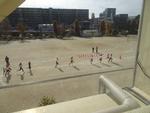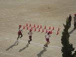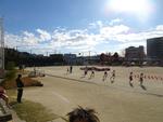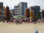 5年生は初めに女子が走りました。走るコースに戸惑わないように、カーブには児童が座って応援していました。ラップタイムを伝える先生の声を聞いて、ペースを上げる子もいました。
