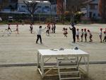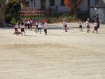 校庭では1,2年生が体育で縄跳びでした。短縄跳び、長縄跳びに挑戦しています。