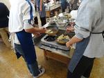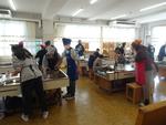 家庭科室からおいしそうなにおいがしてきました。6年生のもう1クラスが調理実習です。ジャーマンポテトを作ります。フライパンの扱い方に慣れている子、進んで洗い物をする子、味付けの塩加減に悩む子など様々な姿がありました。出来上がりもおいしそう。「早く食べたい。」とそわそわしていました。