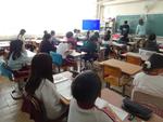 5年生は音楽。専科の先生と今月の歌「スマイル・アゲイン」を歌いました。もう1クラスは理科。メスシリンダーで液体を測り取る活動を一人ずつ行いました。6年生は、英語学力実態調査のテストです。市内の6年生はみんな取り組みます。ヒアリングテストからスタートしていました。