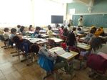3組、4組で交流先での授業の児童はそれぞれの学級で学習しています。教科によっては3,4組の教室で課題に取り組みます。少人数で先生と学習を進めていました。