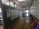 教室や体育館で書き初め大会で書いた作品を教室前の廊下に展示しています。課題の文字とともに自分の名前も作品です。用紙に対してのバランス、はね・とめ・はらいなどを意識して仕上げた作品が並びました。保護者の皆さんも来校の際にぜひご覧ください。