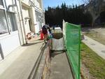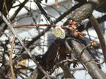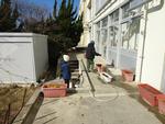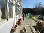4組教室前のしだれ梅の花が咲きました。まだ数輪ですが、春が近づいています。