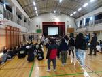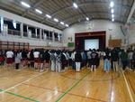 全校朝会を体育館で行いました。早めにエアコンの暖房をつけて空気を温めておきました。まずは今月の歌「スマイル アゲイン」を歌いました。歌詞を考えてしっとりした歌い方でした。続いて校長の話です。『まだ寒いけれど、2月3日は節分、4日は立春で季節は春になっていきます。植物は春を感じて菜の花、梅の花が南部小では咲いています。もう次の季節に動いているのですが南部小の皆さんはどうですか?6年生は中学校への卒業・進学に向けて、1から5年生は次の学年に向けて動き出していますか?1年生も4月には新1年生が入学してきて2年生になります。今の学年で身に付ける学習、生活面、運動面、友だちとのかかわり方、人との話し方はしっかり身についているでしょうか。1学期から南部っ子の皆さんはたくさん成長しましたが3月まであとひと踏ん張りいろいろな力をつけていきましょう。』このような話をしました。
