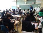 5年生は道徳で自分の個性について考えていました。教科書にはピカソの「ゲルニカ」の絵が大きく載っています。自分らしさって何なのか、考えをプリントに書き入れていました。