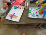 図画工作の作品が、廊下や図工室に展示されています。工夫をして自分だけの作品を作り上げる南部っ子です。5年生は片段ボールの紙を巻いたり湾曲させたりして、ビー玉が転がるコースを作っていました。4年生は開くと立体的に飛び出すカードを作っていました。