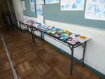 6年生は木工作品が廊下に展示されていました。材料の木をのこぎりで切ったり接着させたりして作り上げました。2年生は紙粘土でメダルを作りました。一人一人、形も色も違う作品でした。