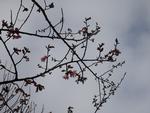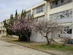 梅の花が満開です。校舎の近くの出は、花びらが舞っています。防災備蓄倉庫の近くの河津桜がピンクの花をどんどん咲かせています。近くの松葉の緑とのコントラストが美しいです。