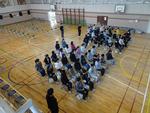 朝のモジュールの時間から6年生は、体育館で椅子や演台の準備をしました。体育館での卒業式練習の開始です。校長と教務主任から、式への心構えの話をしました。立つ、座る、礼をする、歩くの基本動作を確認しました。入場・退場の仕方の説明を聞いてから、実際にやってみました。説明をしっかり聞いて動いていました。今週の金曜日は予行練習の予定です。本番の式と全く同じ流れで通します。