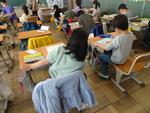 3年生は国語で「おにたのぼうし」の物語の学習でした。本文から登場人物がどういう人物か考え、ノートにまとめました。ノートに書く分量が1学期よりもずいぶん増えました。4年生も国語でした。「木竜うるし」をグループごとにペープサートで演じる準備でした。役割を分担して練習していました。