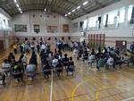 今日は、卒業式予行練習でした。体育館の保護者席には、在校生の代表として5年生が座りました。6年生の姿を見て、来年度の自分たちの目指すところを学びます。いつもと違う雰囲気を感じていたようです。6年生も今まで自分たちだけでの練習でしたが、5年生や先生方の前で動くことでさらに緊張感をもっていました。本番と同じ時間で6年生が入場です。途中でストップすることなく式次第に沿って進みました。