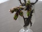 折れてしまった桜の枝をコップにさしていましたら、つぼみが少しずつ開いてきました。
