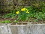 今朝は、雨がパラパラ降って曇り空です。給食室前の水仙がきれいな黄色い花を咲かせています。校長室のコップにさしていた桜の花が咲きました。