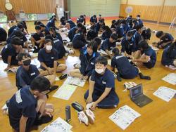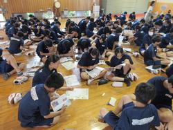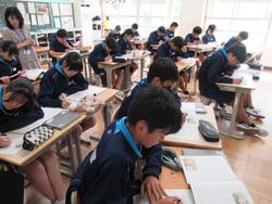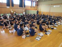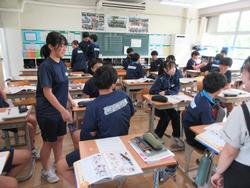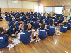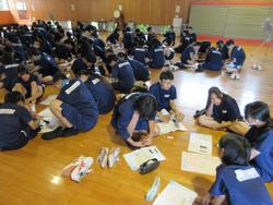 4時間目の道徳の時間は各学年担当者による道徳が展開されていました。特に2年生は学年道徳という形で武道場で授業を行い、グループワークを通して考え議論する道徳が展開されました。
