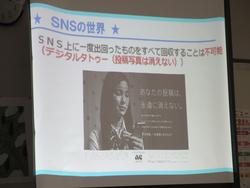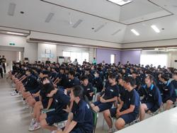 今日は、9月にいろいろな問題があったことを受けて、ネット安全教室という形で警察の方を講師に迎え、「犯罪に巻き込まれないため」「犯罪の被害者にならないため」「犯罪を犯さないため」の講話をしていただきました。中でもSNSのトラブルは拡大しており、軽い気持ちから犯罪を犯しかねない要素が多くあります。今日のお話を聞いてしっかりと自分の行動を振り返ってほしいです。また、心配なことがあった時は早めに大人に相談してほしいです。今日の講演を臨時で行ったことを重く受け止めて安心で安全な学校になるよう努めてまいります。