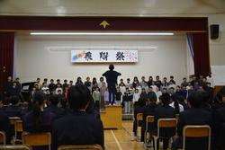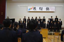 そしてやはり根木中生の偉いところは、前の発表に引きずられずにしっかりした態度で次の発表を聴けるところです。大盛り上がりの後の閉会式も立派な態度で素晴らしいと思いました。最後は校歌合唱でしめて終了。時間が少し押しましたが素晴らしい飛翔祭となりました。生徒会の皆さん本当にありがとうございました。