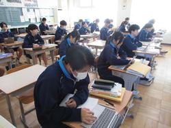 今週末のテストに向けた諸活動停止期間になります。放課後は2年生の希望者が残って学習会をしていました。家庭に帰ってしっかり自分の計画に沿って学習できるかが大切です。チェックリストを作るなど工夫しながらテスト範囲を網羅できる学習をしてください。