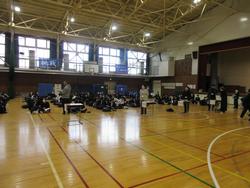 13時に一次避難を開始し、二次避難後、一度戻り14時より体育館で引き渡し訓練となりました。