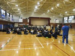 一次避難は避難開始から言葉を発することなく、3分55秒で点呼を完了し、立派な避難訓練でした。体育館での待機も寒い中でしたが、自習して静かに引き取りを待つことができ偉かったと思います。風邪をひいてはいけないので最後は教室に早めに戻りました。本日引き渡しのできなかった家庭については中学校は一斉下校としました。職員は5ルートに分かれてパトロールも行いました。本当に災害があった場合は学校に留め置きとなります。災害が無いことを願いながら、今自分たちでできることの確認を行いました。根木内中学校は地域の避難場所にも指定されているので、地域の避難所の立ち上げも同時に行う必要があります。これからも地域の方のご協力をいただきながら未曾有の事態に備えておきたいと思います。