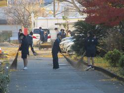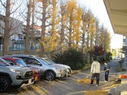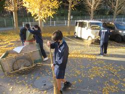 朝、登校すると剣道部の部員がみんなで銀杏の葉っぱをはいてくれていました。