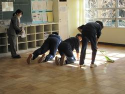 3時間目は愛校作業です。1年間の汚れが落とせるように大掃除を行いました。ワックスもかけ年末を迎えます。
