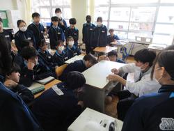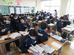 3年生の私立の結果が出始め、校長室に推薦合格した生徒や進路決定した生徒が報告に来てくれてとても嬉しいです。一方で私立のチャレンジで残念な結果の生徒もいるのでメンタルが心配です。困難を乗り越え立ち向かう力を信じています。第一希望の合格に向けてクラスみんなで頑張れる雰囲気づくりをしてほしいです。3年生授業がんばっていました。