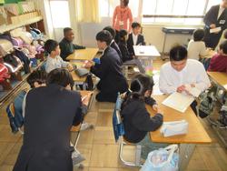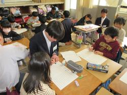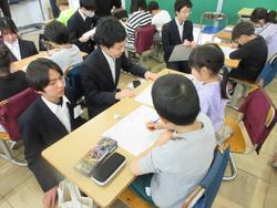 3年生は5時間目の時間帯に根木内小学校を訪問して小学校2年生に対して「算数」の勉強をしにいきました。内容は、掛け算九九、ひっ算、くりくり上がり、最後のチャレンジは割り算につながるものまで。さあ、準備したように上手く小学生に教えることができるでしょうか?