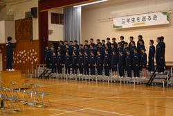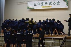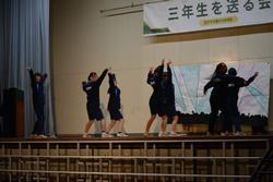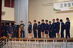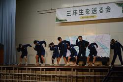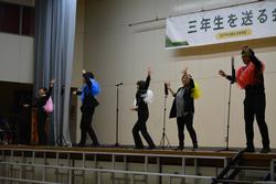 いよいよ、1,2年生合同の発表。新しい試みでしたが、劇のキャスト、ダンサー、そして音響証明や大道具・小道具と各部署が頑張ってくれたことがよくわかりました。根木中の卒業生5人がオーディションを受けに行くという設定の劇。オーディションを進めていく中に、根木中生ならではのスキルや3年生のいろいろな想いでエピソードなど楽しさ満載の劇でした。そして2年生の合唱「空」に会場の雰囲気は「感動」の涙も見られました。今年度のNHKコンクールの課題曲ですが難しい曲を素敵に歌い上げてくれました。最後に「エール」。1年生は1番を歌い、2年生が2番から参加。力を合わせて感動の曲を歌いあげました。1,2年生合同で成長を見せてくれた発表。きっと3年生に気持ちも通じて恩返しになったと思います。