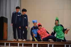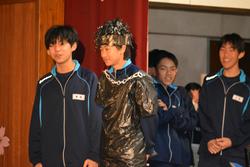 生徒会の開会宣言はお笑い芸人のネタで楽しく始まりました。するとそこに特別ゲストの登場。3年生の先生方によるスペシャルダンスで早くもボルテージはマックスになりました。