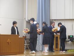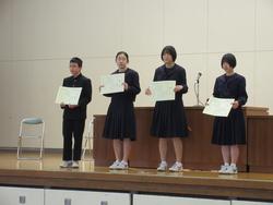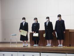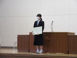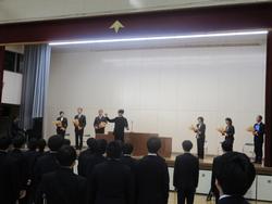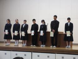 表彰では、剣道部、駅伝部、吹奏楽部、バスケット部、卓球部、美術、家庭科、書生会など多くの紹介がありました。表彰が多いのはうれしい気持ちになりますね。また、学校に活気が出てきます。おめでとうございます。