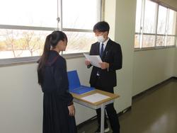 修了式では、修了証の授与、代表生徒の言葉がありました。