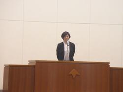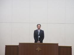 式辞では短く「向き、不向きより、前向きに」の一言。