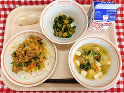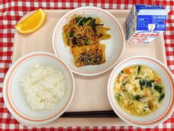 コーン茶飯は、しょうゆ、酒、塩、だしこんぶ、コーンを上にのせてお米を炊きました。コーンの甘みがおいしいご飯です。三連休明けで疲れ気味の体に優しい和食の給食でした。