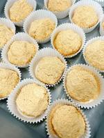 キャロットケーキは、人参ペーストが入った手作りケーキです。小麦粉や砂糖、豆乳バターなどのほかに豆腐を加えしっとり感を出しました。低学年、中学年、高学年と生地の量を変えて、一つひとつ丁寧に作ってくれました。きれいに焼きあがり、とてもおいしくできました。