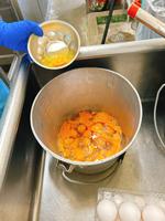 たまごスープは10kgの卵を使いました。一つひとつ手で割って、殻が入らないようにします。