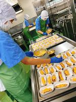 鮭のもみじ焼きは、すりおろした人参とマヨネーズをまぜたソースを鮭の上にかけてオーブンで焼きました。人参のオレンジ色を秋の紅葉にみたてた季節の献立です。初めて食べる1年生は、箸が進まない子もいましたが、一口食べてみると「おいしい」「これなら食べられる」と言って食べている子が何人もいました。給食を通して、いろいろな食べ物や料理が食べられるようになるといいですね。