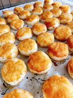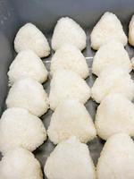 みそ焼きおにぎりは、一つひとつ手でおにぎりを作って、両面にみそをつけてオーブンで焼きました。みそがつけやすいように丸い形で作ってくれました。みそが香ばしくおいしくできました。
