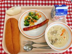 今日は白いんげん豆が入ったシチューでした。ルウを使わず米粉でとろみをつけて仕上げました。マッシュルームの旨味がありクリーミーでおいしくできました。豆が苦手な子もシチューならよく食べていました。