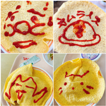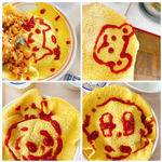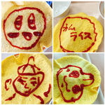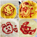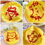 子どもたちは、オムライスにケチャップで絵を描いて楽しんで食べていました。みんなじょうずです。