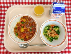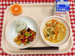 今日は千教研日課で早い給食でした。スパイスがきいて少しピリ辛のカレーでしたが、どのクラスもモリモリ食べて片付けも早くできました。