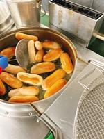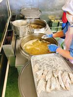 黒だいをフライヤーで揚げているところです。↓