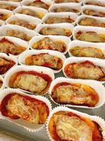 黒だいは、千葉県の船橋市で水揚げされました。白身の魚でふっくらとおいしい魚です。黒だいの上に、にんにくがきいたトマトソースをかけてチーズをのせてオーブンで焼きました。みんな骨を上手にとって食べていました。