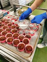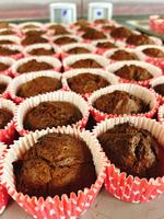 明日はバレンタインデーなので、チョコレートマフィンを作りました。カップもバレンタイン仕様でハート柄です。