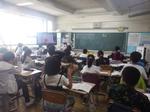 5年生の算数科では、倍数や約数から最小公倍数、最大公倍数と難しい内容に入っています。子どもたちは真剣に取り組んでいます。体育科では、バスケットボールの学習です。チームの全員が活躍できるルールなので、楽しく活動していました。