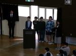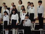 今日はその壮行会を体育館で行いました。まずは部長より挨拶を行い、NHK音楽コンクール千葉県大会でも披露した合唱曲を披露しました。人数は決して多くはない合唱部ですが、その歌声は体育館いっぱいに響き渡りました。全校児童がその合唱に聞き入り、合唱が終わった後は自然と拍手が起こっていました。