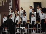 合唱曲を披露した後は児童会と校長より音楽部のみなさんに向けてお話をしました。NHK音楽コンクールと違い、合同音楽会は順位をつける会ではありません。音楽部のみなさんには、ぜひ合同音楽会を楽しんできてほしいと思っています。歌を歌う楽しさや部活動の楽しさを、会場に来ている人たちに届けてほしいです。
