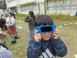 この学習では遮光グラスを使って太陽を観察しています。遮光グラスを使うと太陽を見ることができるので、子供たちは大喜びです。あまり見すぎると遮光グラスを使っていても目を悪くすることがあるので、気を付けるよう担任からも指導していると思います。子供たち自身も十分に気を付けてほしいなと思います。