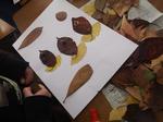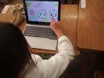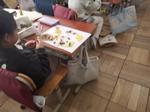 1年生は、公園や学校で拾ってきた、木の実や落ち葉でそれぞれに動物や建物等、好きなものをイメージしながら作成しています。葉の色を組み合わせて楽しく活動していました。タブレットでは、算数科の学習で「いくつといくつ」で10になる数を学んでいます。くりかえし学習することで、基礎基本の定着ができるようにしています。