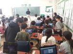 1年生は、錐(きり)を上手に使ってどんぐりゴマを作っています。また、リースづくりでは、様々な飾りつけをして、色鮮やかな作品を仕上げていました。新しいタブレットの設定では、6年生のお兄さんやお姉さんが手伝ってくれました。