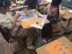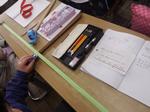 2年生は、かるたづくりに挑戦しています。言葉を考えることに苦戦していました。算数科では長いものを測る学習に入りました。最初は30cmものさしで工夫しながら測り、さらに1mの定規を活用していました。ダンスの学習はいつも意欲的に取り組む2年生です。